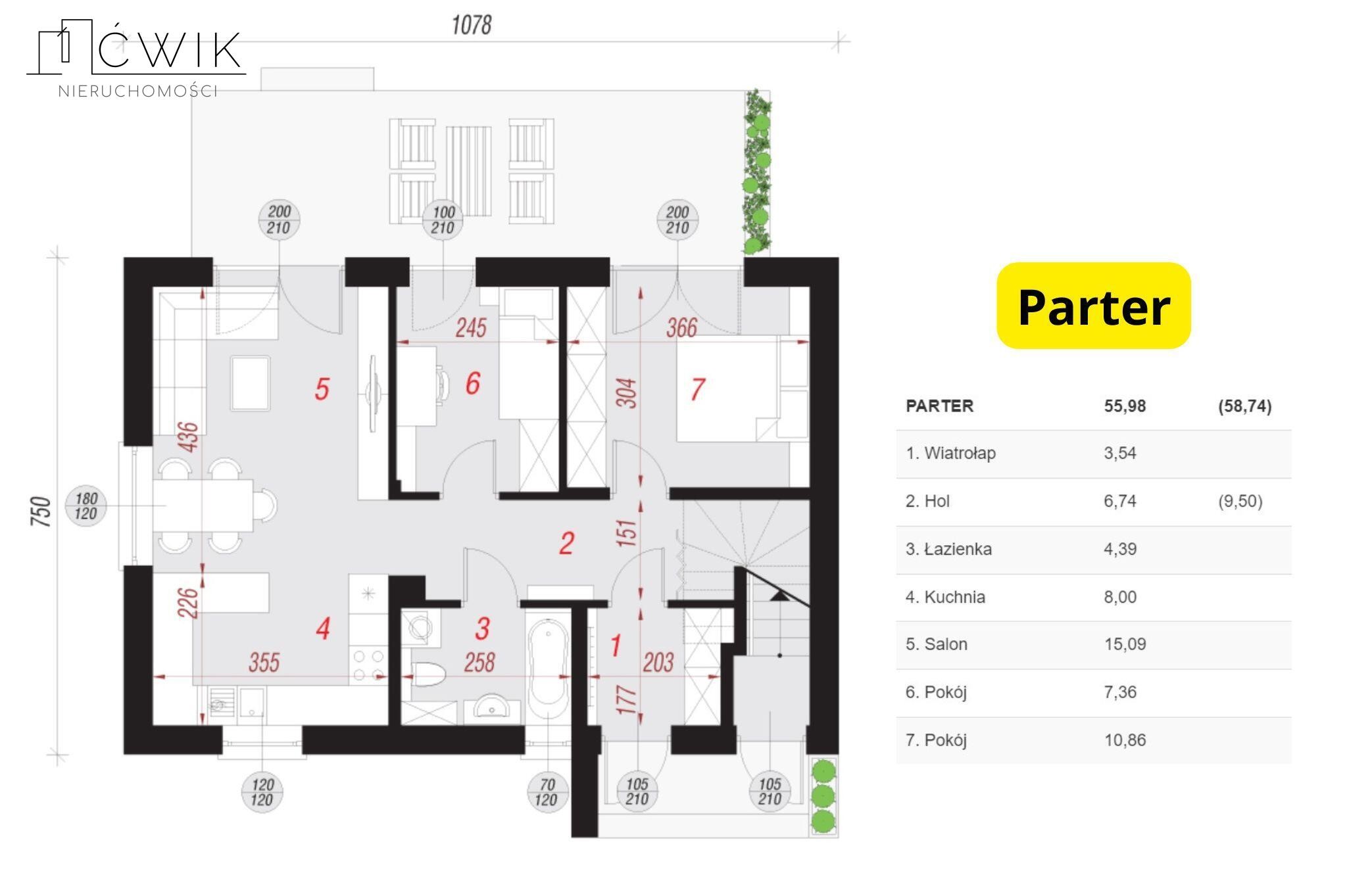 - Parter - 55,98 m2 z przestronnym tarasem oraz prywatnym ogródkiem.