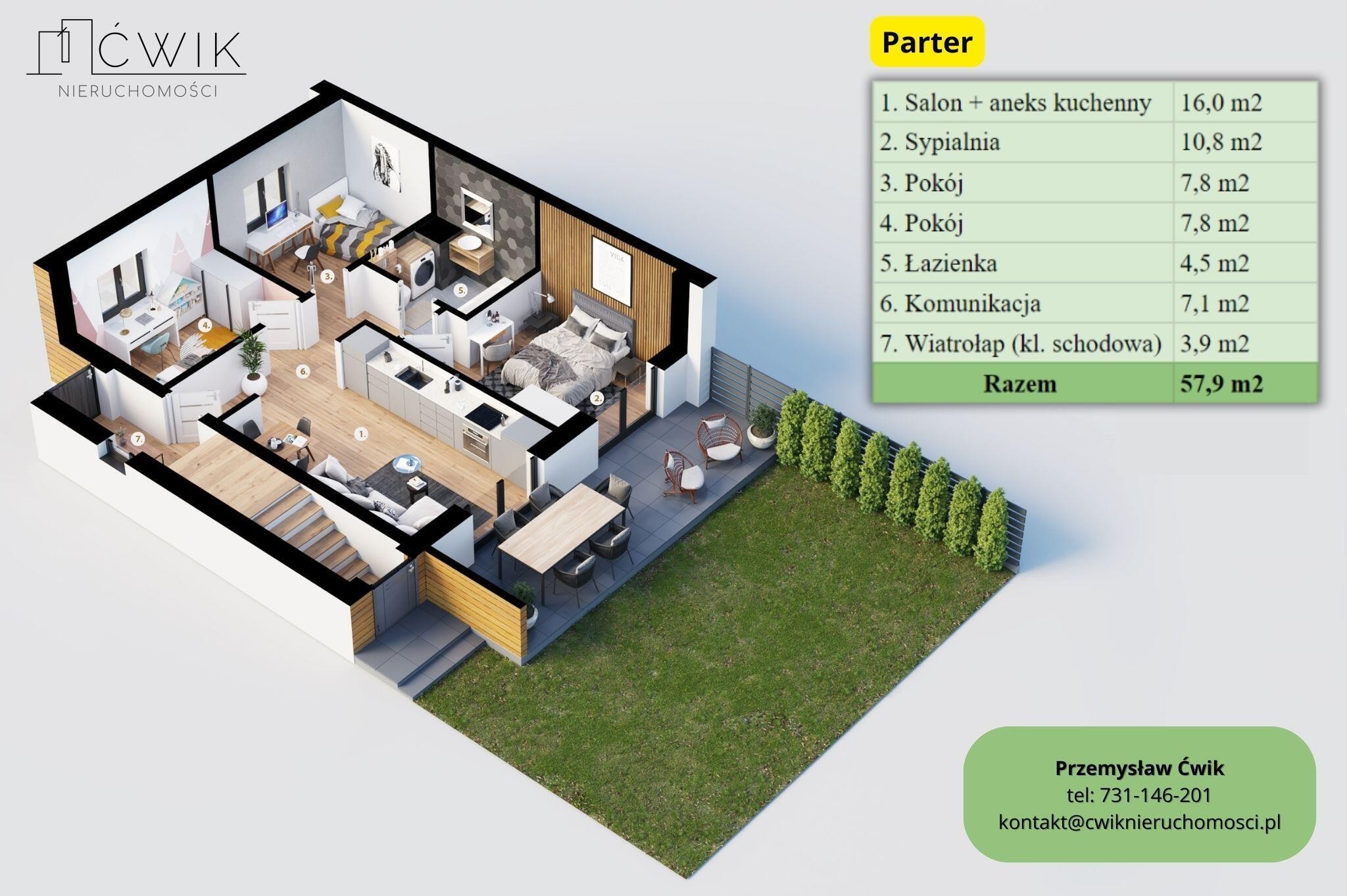 - mieszkanie 4-pokojowe - 57,9 m2 - 538 470 PLN