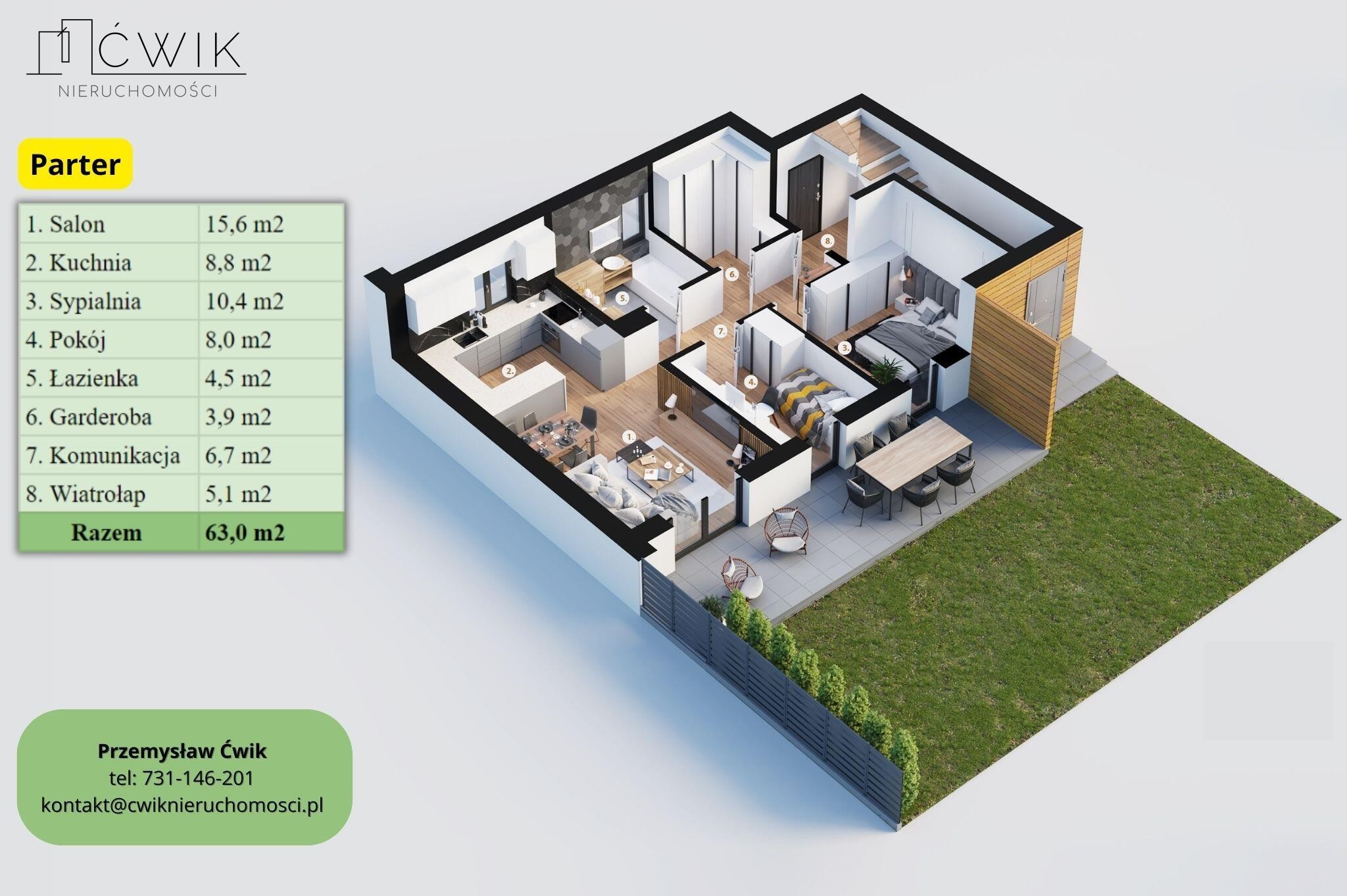 - mieszkanie 3-pokojowe - 63 m2 - 585 900 PLN