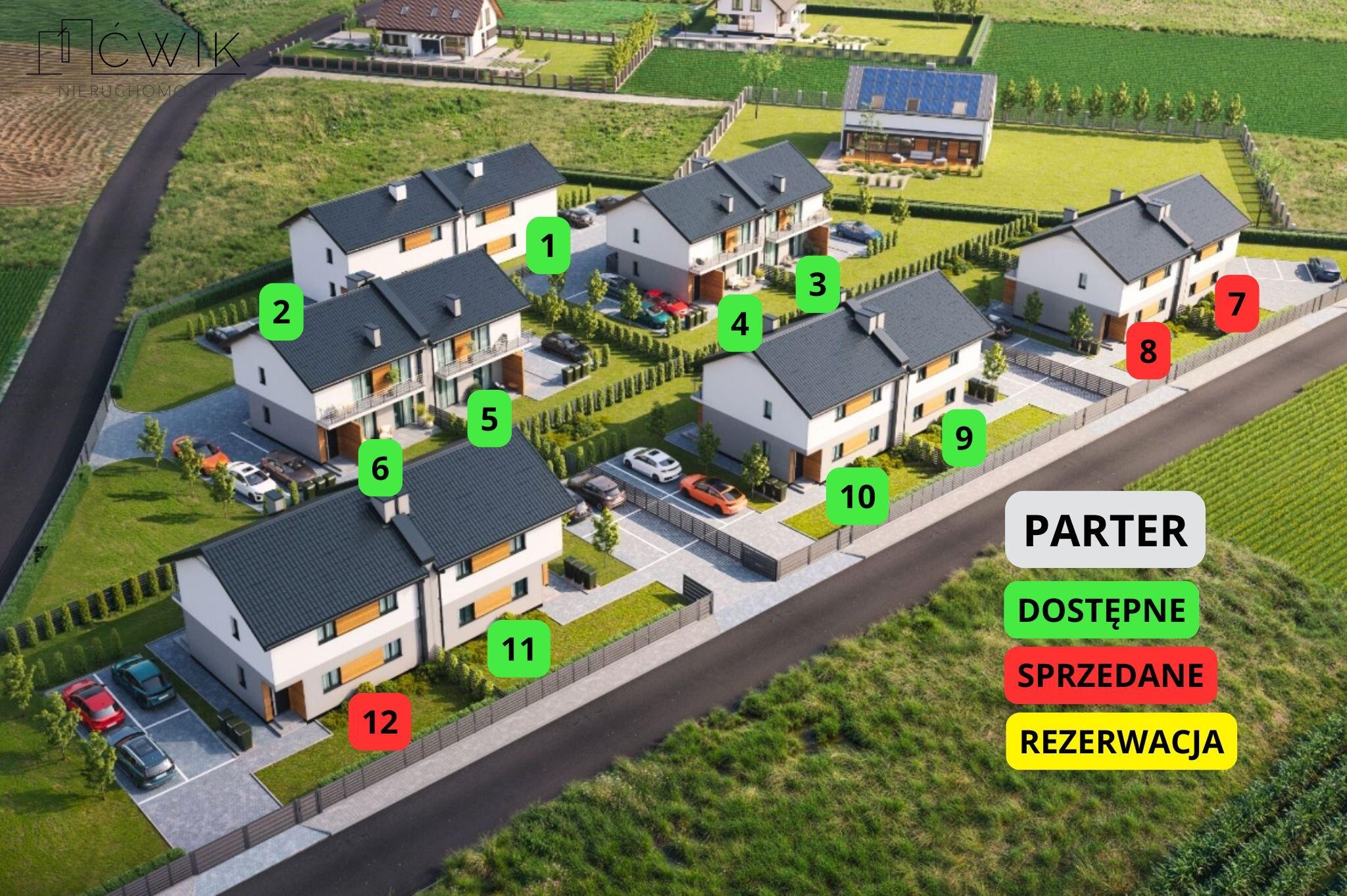 Osiedle kameralne, składające się z 6 budynków jednopiętrowych. Każdy z nich będą tworzyć tylko 4 mieszkania. Taki układ zapewni komfort i spokój przyszłym mieszkańcom.