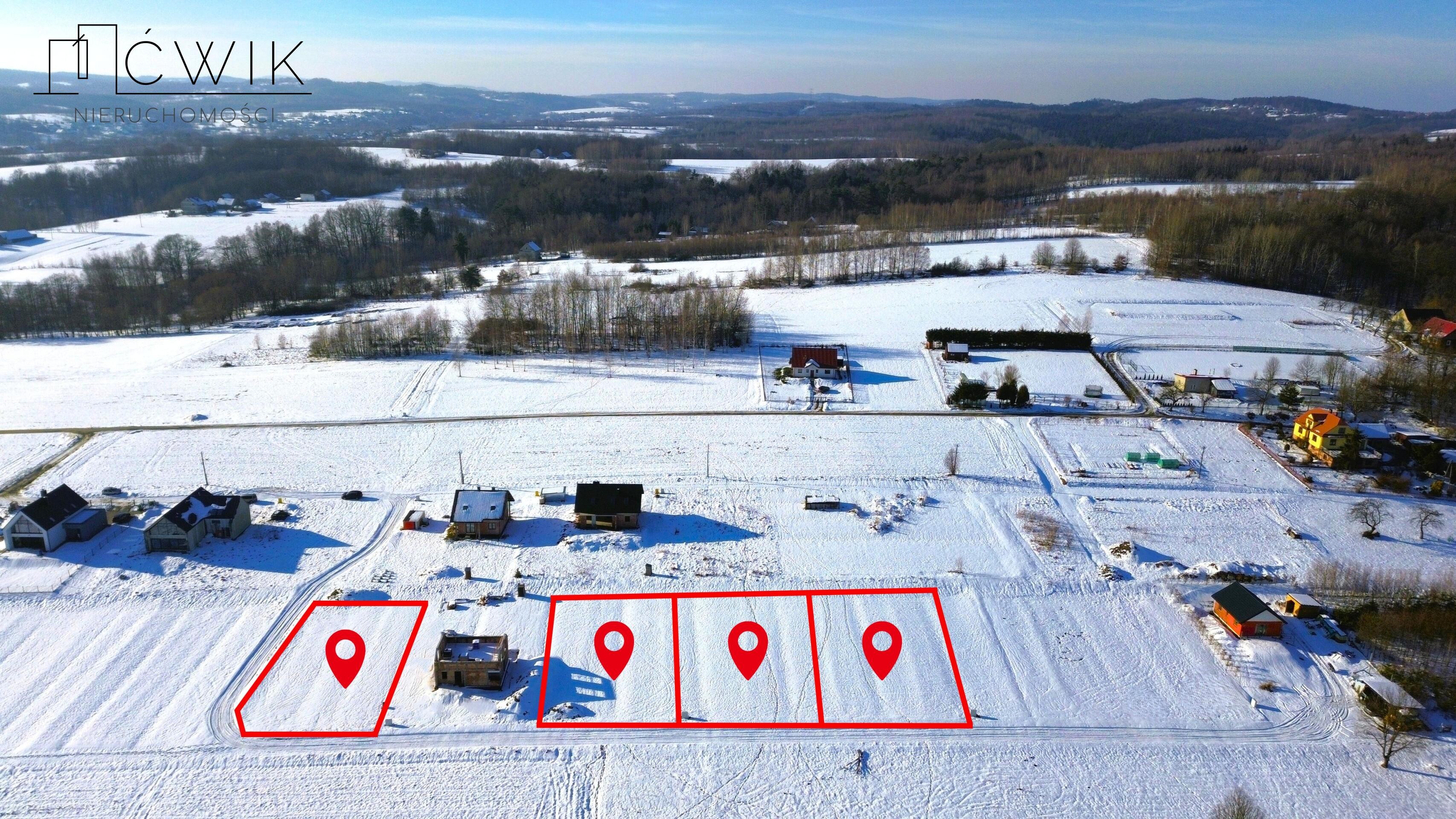 - Działki ustawne i kształtne - idealne pod budowę domu jednorodzinnego (wymiary zaznaczone na rzucie z geoportalu dołączonym do oferty).
