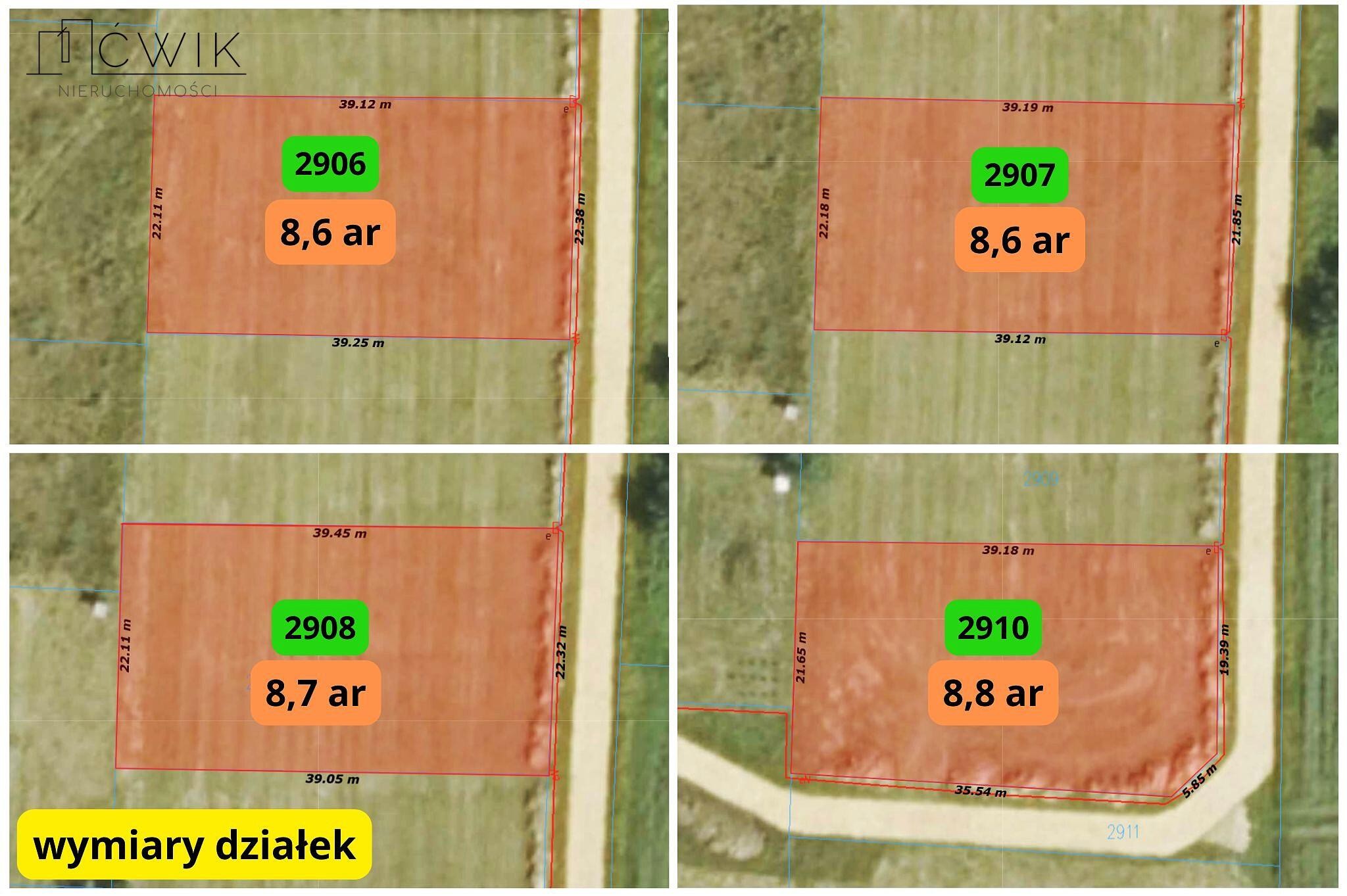 - działka nr 2908: 8,7 ar - 89 000 PLN