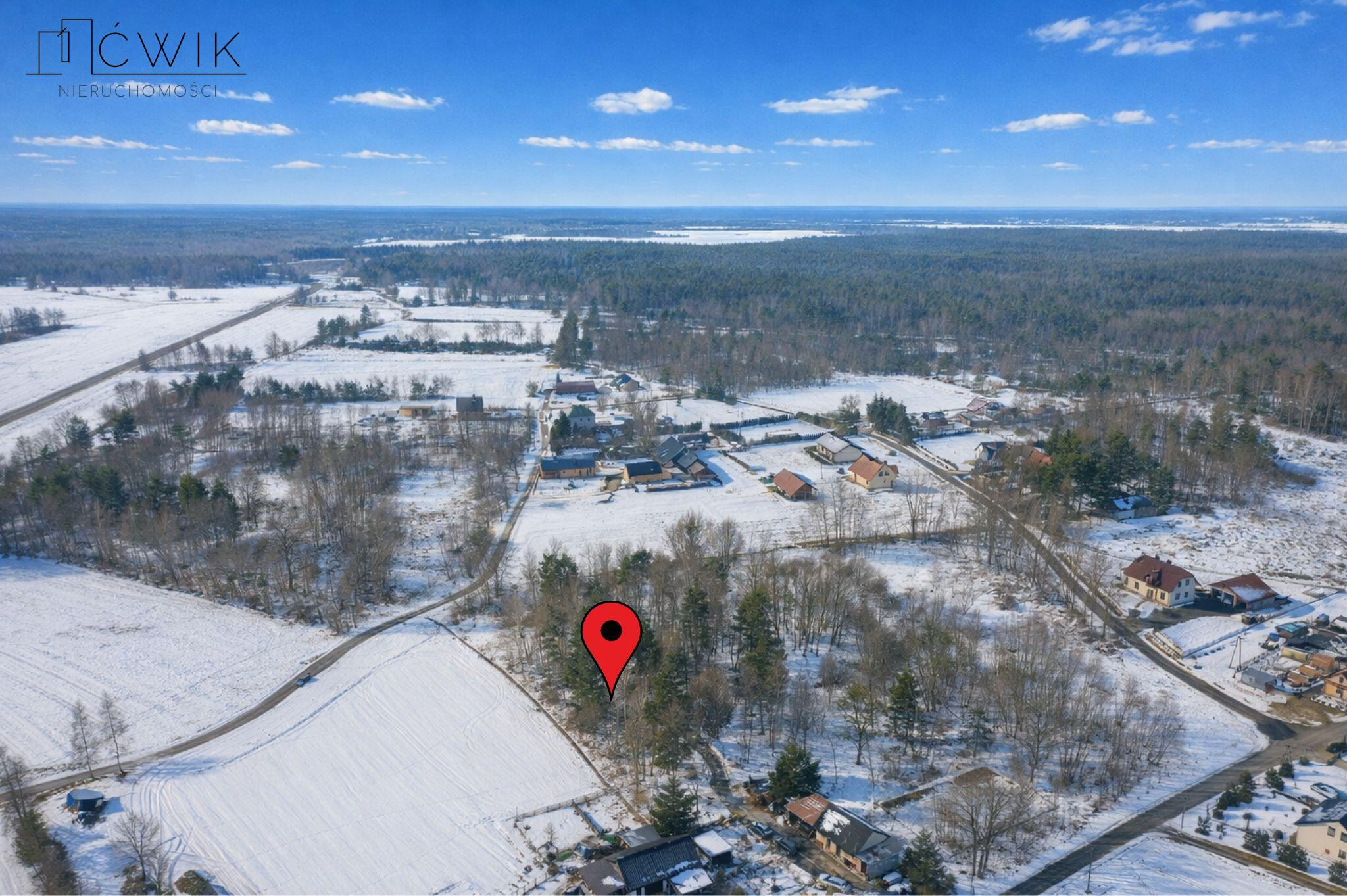 Działki położone są wśród luźnej zabudowy jednorodzinnej, w pięknej, zielonej okolicy.